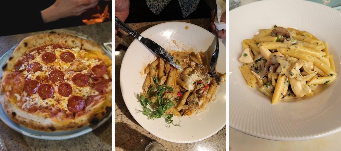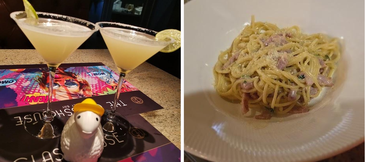The Glass House specializes in Italian cuisine, offering a variety of dishes from pasta to pizza, alongside a full bar for cocktails and wines.