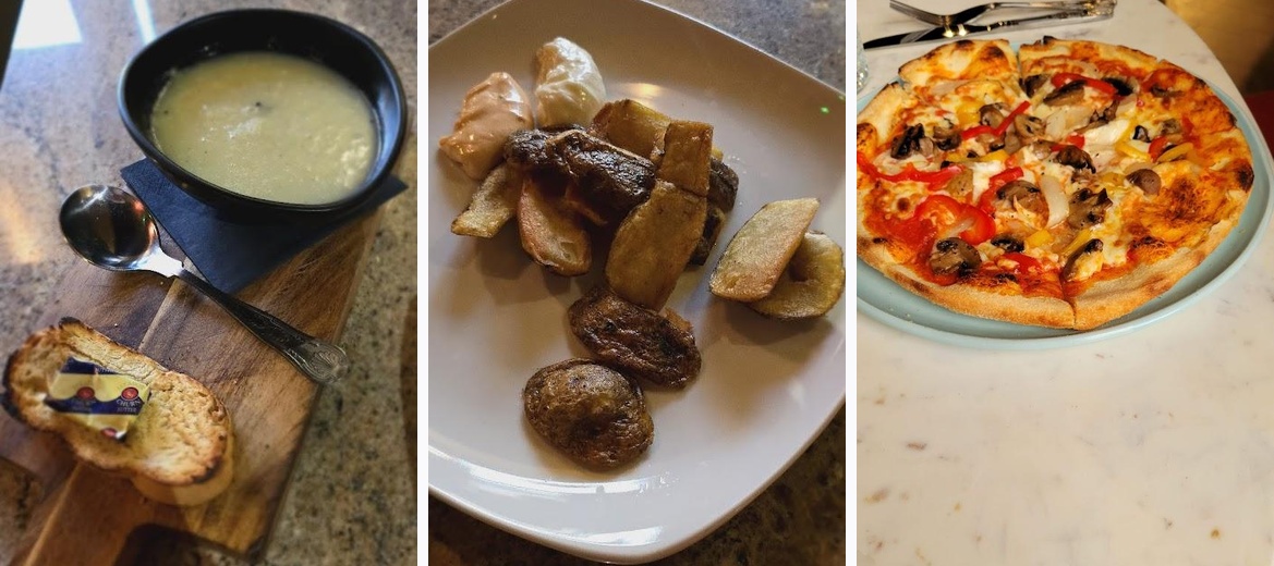 Unbelievable special at £5.95. Food quality and portion sizes excellent. Had minestrone soup to start. Plenty of chunky veg and pasta in a peppery broth. Altonno pizza was fantastic - the bases here are amazing (right mix of crispy/ doughy). And ice cream with caramel sauce to finish. The complementary bruschetta which came with the starters, made it all the better. Wife had potato skins, quattro stagioni pizza and coffee which were all lovely.